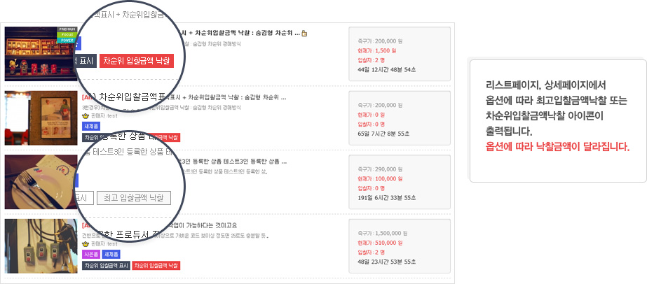 -리스트나 상세페이지에 차순위입찰금액표시 아이콘이 출력됩니다.